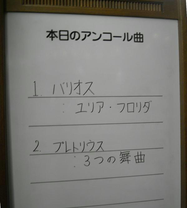 Bプログラムだったが、アンコール曲は「バリオス:フリア・フロリダ」と「プレトリウス:3つの舞曲」ところが出口に張り出された掲示板には「フリア・フロリダ」が「ユリア・フロリダ」と書かれていた。ギター音楽に詳しい人はこのミスにすぐ気づくが、あまり詳しくない人のために、余計なお節介ながら、書いた人に嫌われるの覚悟で、あえて正しい曲名を掲載しておこう!